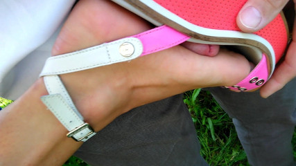 Zooming on beautiful feet in beautiful wedges - 2 pairs -.