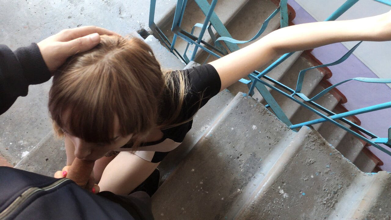 Fucked Me in the Stairwell While Parents Are at Home - Swallowed All Sperm - POV